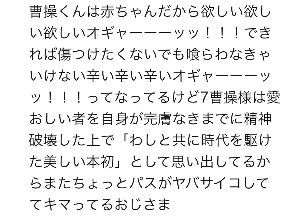 曹操ルートを経た現パロで曹操くんが確実に本初ちゃんに胃カメラ飲めだか人間ドック受けろだかめちゃくちゃ言いまくってるのが見える、本初ちゃんの胃は確実に覗かねばならないので
